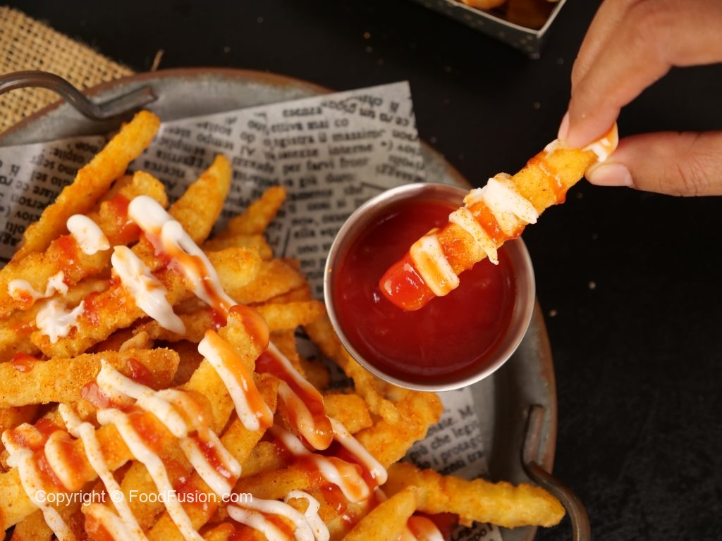 -Sprinkle prepared fries masala & mix well.