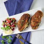 -Brush prepared garlic oil on top of stuffed chicken & insert toothpick or skewer to seal the stuffing.