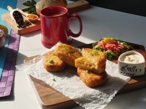 Karhai mein cooking oil garam karein aur hash brown ko golden brown hunay tak fry ker lein.