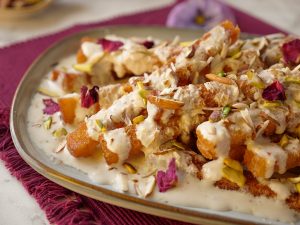 Chicken stuffing dal dein aur end sa carefully roll kertay hoye rose ki shape bana lein (makes 6-8).
