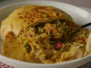 Ab is mein fried chicken,stir-fried vegetables dal ker mix ker lein.
