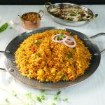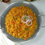 -Garnish tawa veg pulao with onion rings & serve with zucchini dahi.