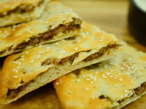 -On a paratha,spread mayo sauce,cooked beef cubes,onion rings,green chutney,mayo sauce,warp in butter paper & serve (makes 4-5).