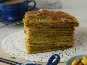 -Add & spread desi ghee,cut the dough from the center and roll out one edge,twist and again make a dough.