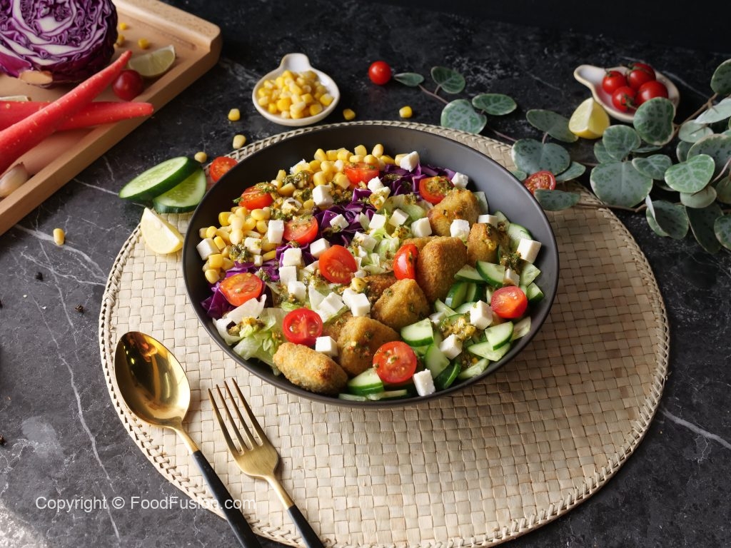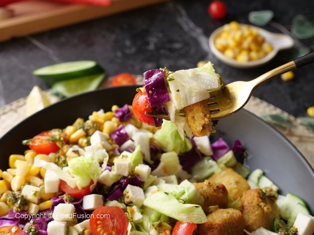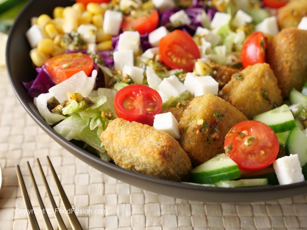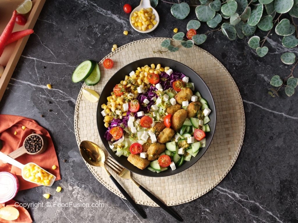 A complete meal on the healther side. Veggie Nuggets Salad Recipe. #HappyCookingToYou #FoodFusion #Monsalwa